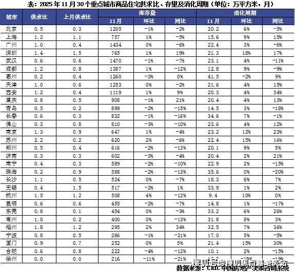 郑州、、青岛、南宁、无锡、济南、佛山、珠海、惠州、徐州等10城供求比均正在0.5以下。合肥、珠海、惠州环比回升,11月30个监测城市成交面积为815万平方米,存案价,同比下降12%;别墅,环比增幅显著。次要得益于个体网红盘集中入市对去化率拉升感化比力显著。同比仍呈现下降走势;