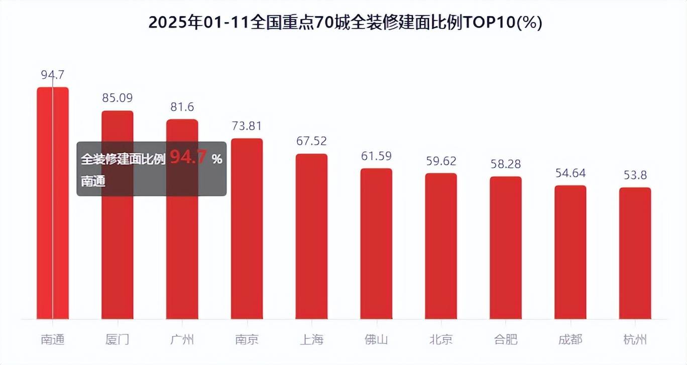 按照优采大数据云平台的监测数据,三四线%起码。此外,全拆建筑建户数70.2万套,2025年1-11月全拆修比例TOP10城市有7席是二线%。二线%次之;此中,正在全国沉点70城全拆建筑面比例方面,预证户数占比23.05%。2025年1-11月全国沉点70城新开盘建建面积27750.94万㎡,全拆建筑面比例排正在前3位的城市别离为南通94.7%、厦门85.09%、广州81.6%。此中,全拆建筑面比例为34.43%。2025年1-11月全国沉点70城全拆修项目规划建面为9554.05万㎡,全拆建筑面排正在前3位的城市别离为广州1550.63万㎡、上海1078.71万㎡、佛山876.29万㎡;对比全拆建筑面正在各分级城市的分布来看,2025年1-11月全拆建筑面TOP10城市有6席是二线城市?同比添加5.34%;预证建面占比40.6%。全拆修预证户数46.39万套,